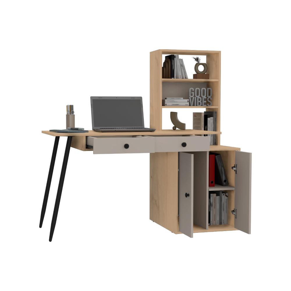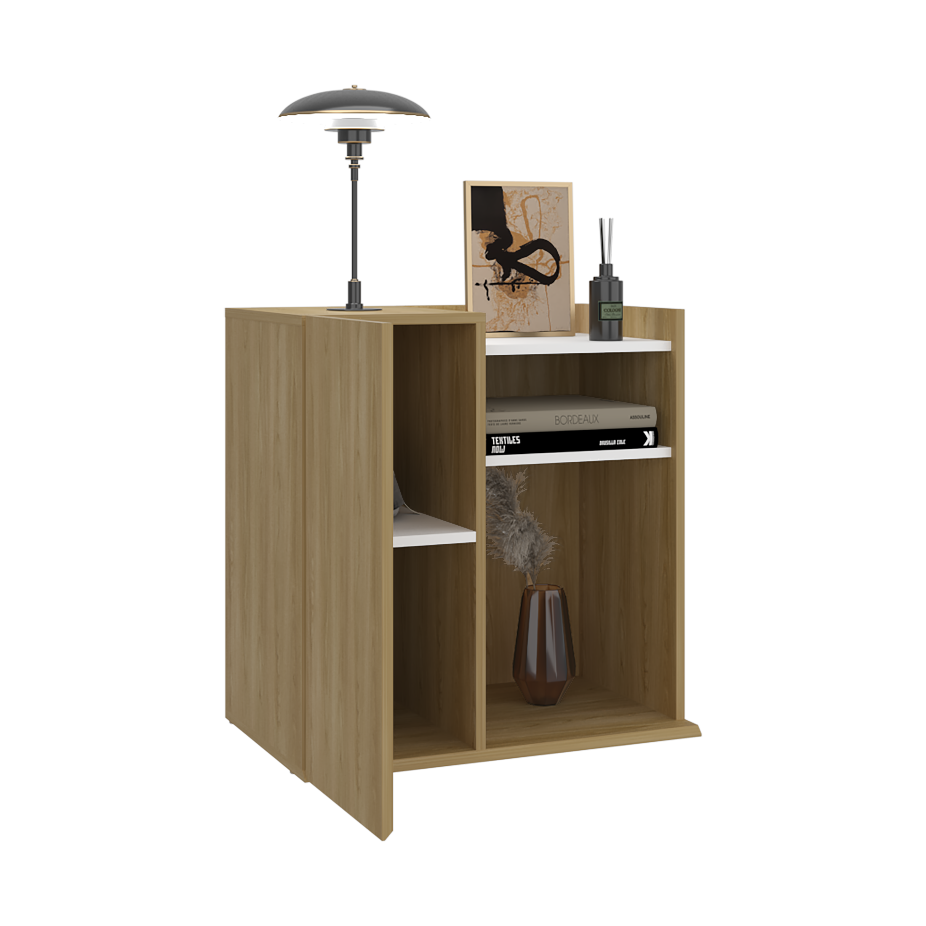 Mesa de Noche Evert, Fresno Europeo y Wengue, con diseño moderno y espacio para ubicar objetos